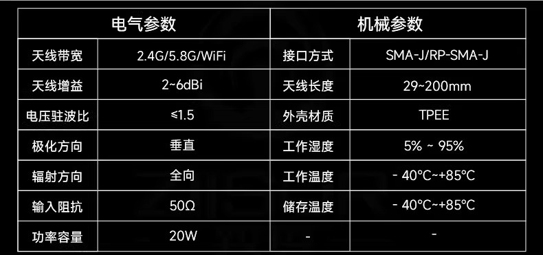 2.4/5.8G dual-band 6dBi 195mm SMA inner pin